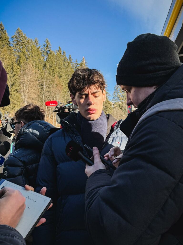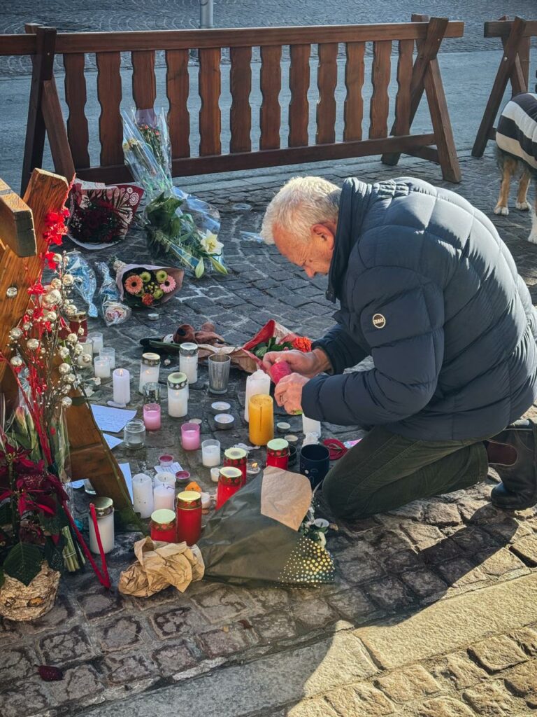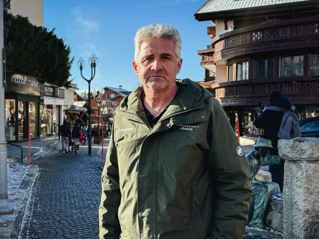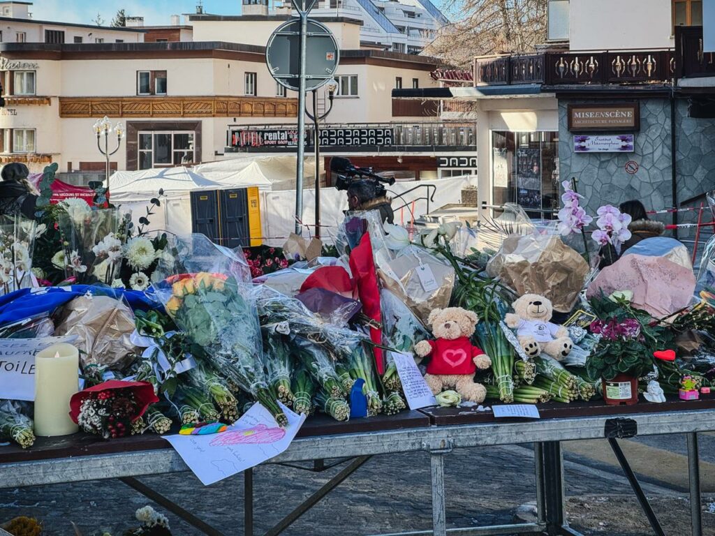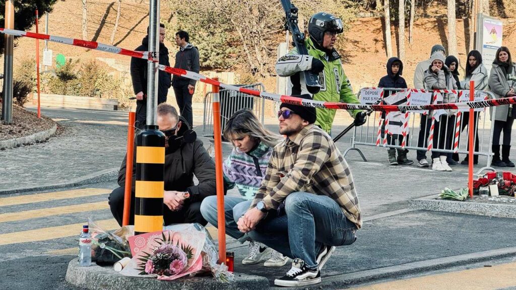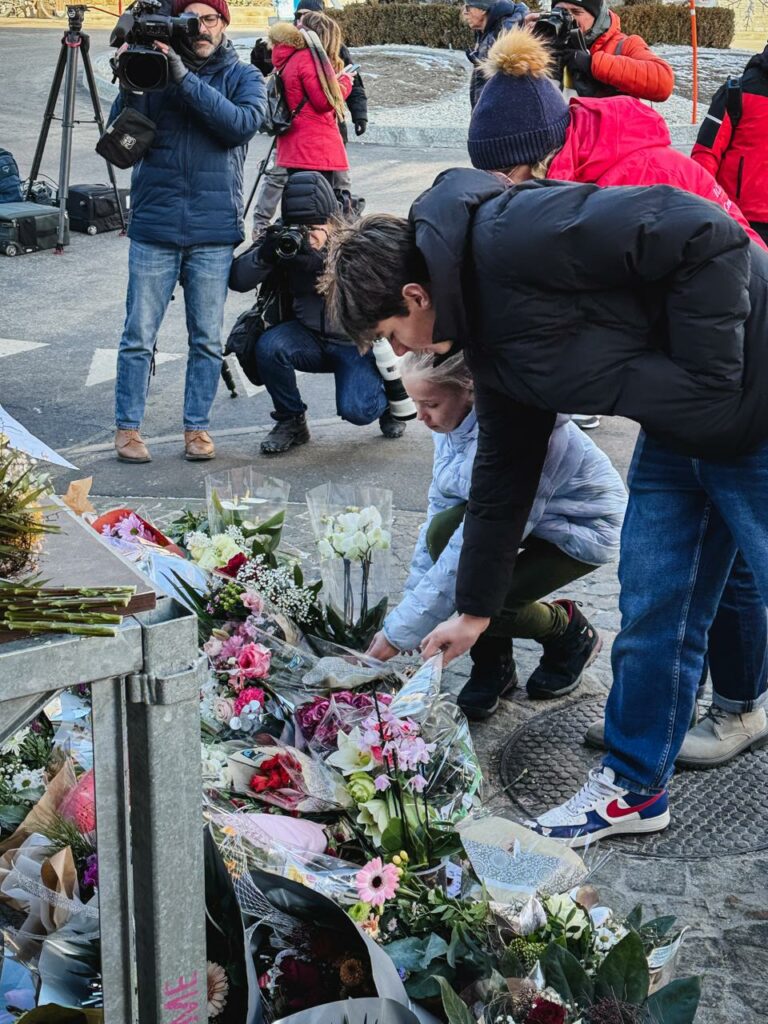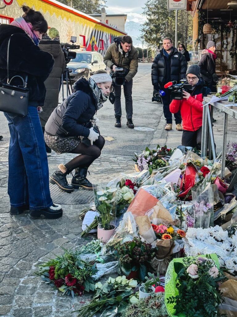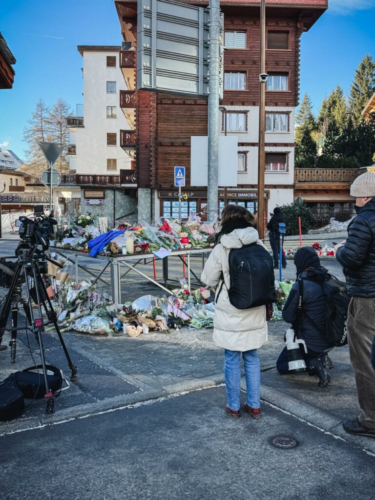 Nur kurz später schlendert ein Skifahrer mitten durch die Menschenmenge. Verwundert erblickt er das Blumen- und Medienmeer. Doch er hält nicht inne – sondern zieht weiter. Genau hier, an diesem Ort, zu diesem Zeitpunkt, prallen in Crans-Montana Welten aufeinander.