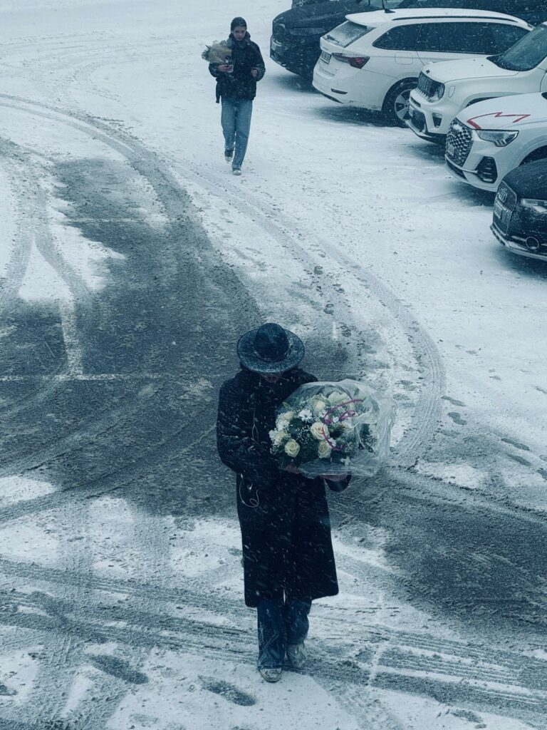 Das Dorf ist winterlich gekleidet, es schneit. Ein kalter Wind zieht durch die Strassen. Die Menschen, dick eingepackt, die meisten in Schwarz, viele von ihnen tragen Blumen, strömen in Scharen zum Kongresszentrum Le Régent und zur Place du Scandia.