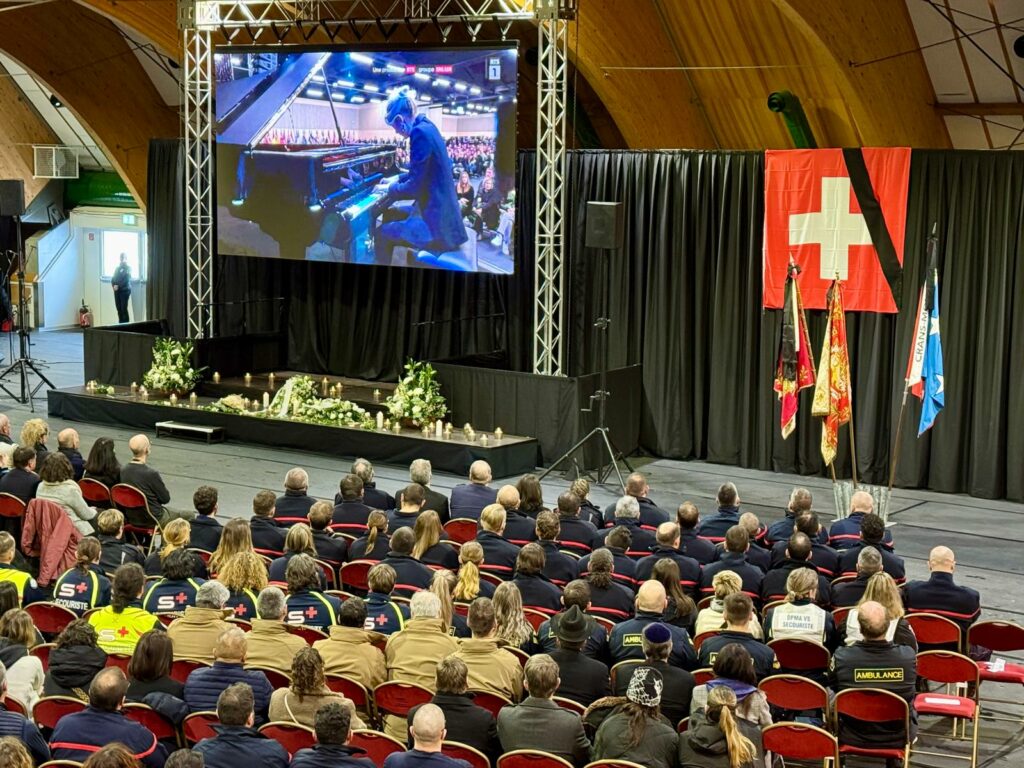 Am Freitag fand in Crans-Montana, wie im ganzen Lande, der von Bundespräsident Guy Parmelin ausgerufene nationale Trauertag in Gedenken an die Opfer und Verletzten von Crans-Montana statt. Des Wetters und der Sicherheitsbedenken wegen wurde die Feier im CERM in Martinach abgehalten. Doch die Zeremonie wurde in Crans-Montana live übertragen, auf drei Grossbildschirmen, an verschiedenen Standorten. Tausende waren dabei.