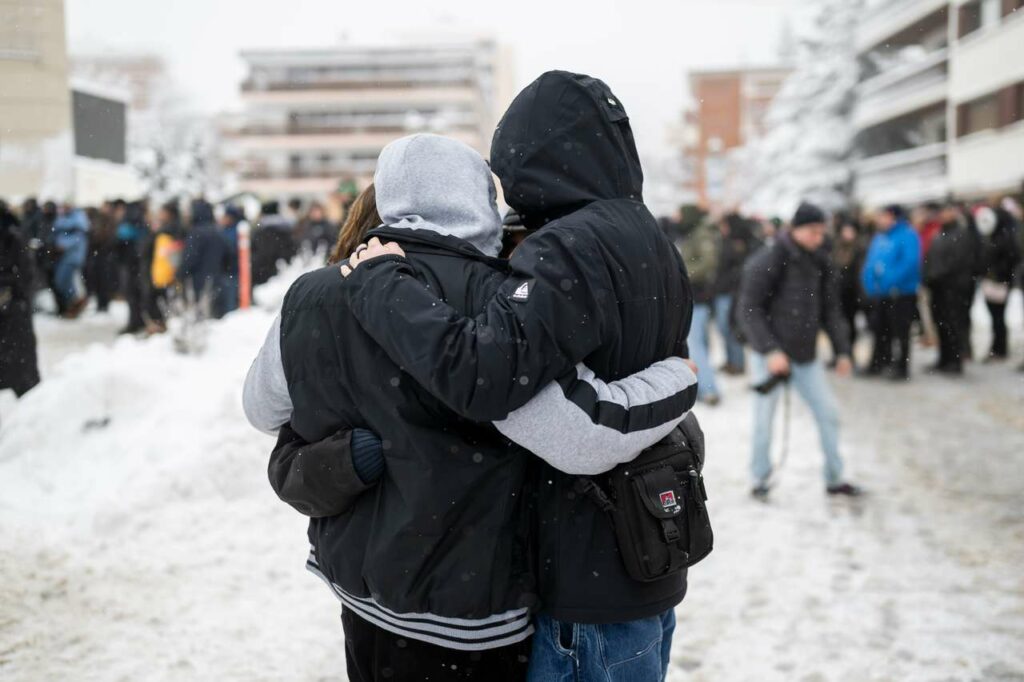 Viele Menschen halten Hände, liegen sich in den Armen. Nicht wenige halten Taschentücher in der Hand und vor dem Gesicht, vielen kommen die Tränen. Es sind viele trauernde Angehörige in Crans-Montana. Die hier zusammengekommene Gemeinschaft, sie wirkt familiär. Viele kennen sich. Und viele kannten jene, die nicht mehr sind.